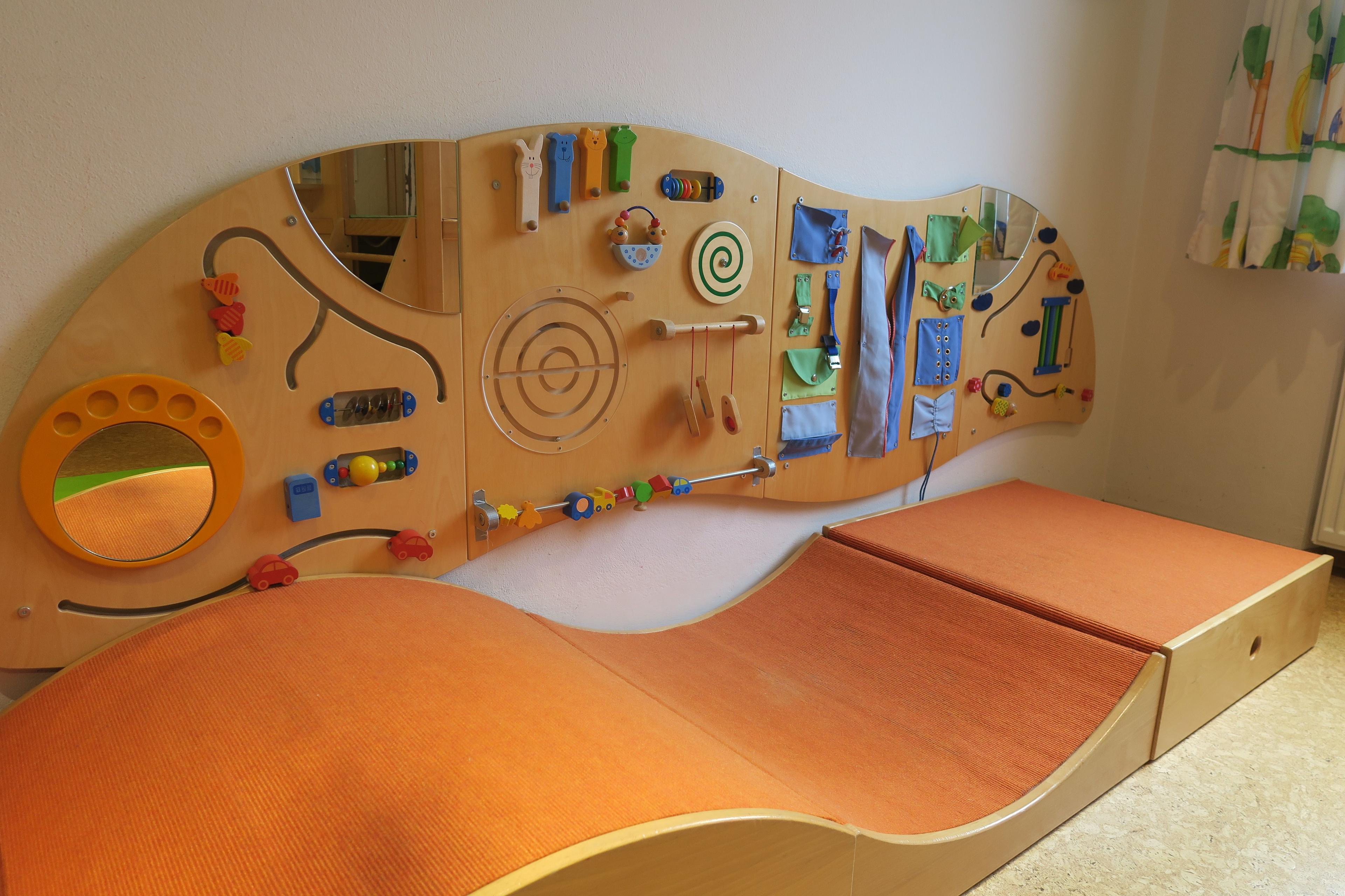 Die Räumlichkeiten der Kinderkrippe Waldwichtel befinden sich im umgebauten Altbautrakt des Seniorenzentrums. Unsere Etage im Hochparterre kann bequem mit dem Aufzug erreicht werden. Der Kinderwagenraum und das Büro sind den Krippenräumen vorgelagert. Uns stehen zur Verfügung: